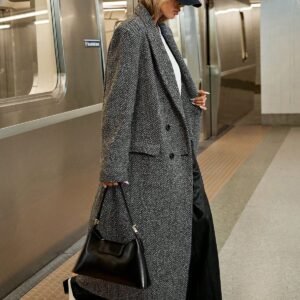 Siren Gaze Women’s Herringbone Pattern Lapel Collar Long Sleeve Long Overcoat, Autumn/Winter Casual