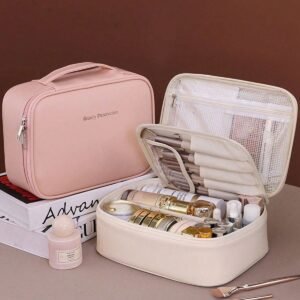 1pc Large Capacity Multi-Layer Compartment Multifunctional Makeup Bag, Summer Travel Organizer Bag, PU Waterproof Leather Zipper Closure Handheld Portable Makeup Storage Bag, Suitable For Valentine’s Day Gift, Mother’s Day Gift, Wedding Gift, Bridesmaid Gift, Travel Essentials Bathroom Accessories Back To School