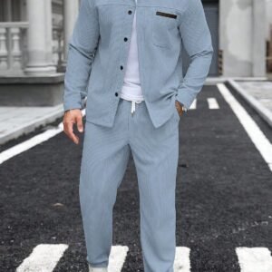 Manfinity Homme Men’s Pocket Corduroy Shirt & Elasticated Waistband Pants Casual Suit Men 2 Pieces Leisure Suits Dusty Blue Suits For Men Baby Blue Men Outfit Men Dressy Set, For Winter