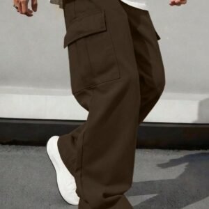 1pc Men’s Multi-Pocket Solid Color Slim Fit Cargo Pants, Suitable For Spring/Summer Beach, Vacation, Daily Commute, Workout, Outdoor, Casual, Fitness, Jogging, Straight Leg Trousers, Fashionable Streetwear, For Fall