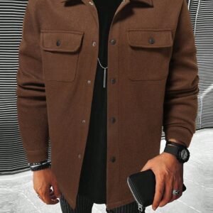 Manfinity Homme Men Long Sleeve Flap Pocket Overcoat , Fall Winter