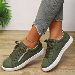 Women’s Outdoor Casual Slip-On Sneakers, Comfortable And Versatile Lace-Up Side Zipper Flat Shoes
