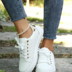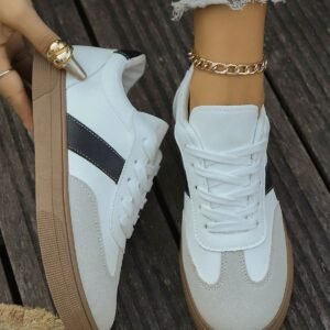 Women’s New Lace-Up Color Block Element Casual Sneakers, Modern Fashion Elegant Style Outdoor Street Campus Versatile Athletic Shoes