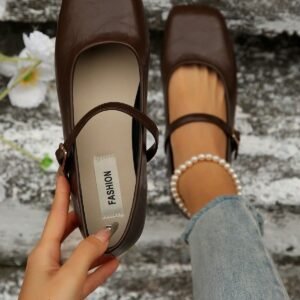 Women’s Brown Buckle Decor Simple Ballet Flats, Fashionable & Elegant Mary Jane Shoes, Suitable For Spring, Autumn, Winter, All Seasons, Soft Sole Design For Comfort, Suitable For Work, Student, Home, Travel, Elegant Outfits, Classic & Versatile, Soft & Comfortable, Excellent Experience