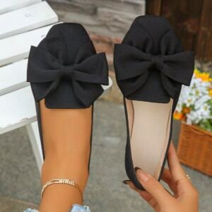 Women’s Bow Square Toe Wide Fit Ballerina Flats, Comfortable Slip-On Loafers, Elegant For Spring/Summer Everyday, Office, Commuting, Black Wide Width Shoes