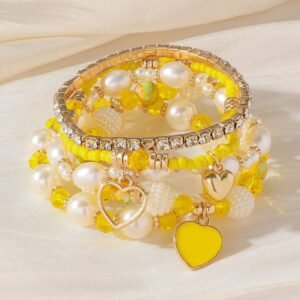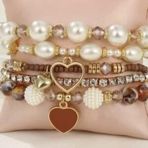 5pcs/Set Pearl & Crystal Bead Bracelets, Stylish Layered Bracelet Set For Women
