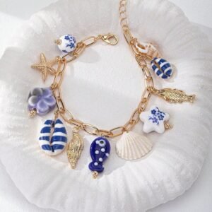 1pc Handmade Summer Starfish & Shell Pendant Bracelet, Beach Style Jewelry Accessory, Suitable For Beach Party And Photography, Colors And Shapes May Vary