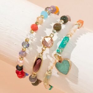 3pcs Heart Charm Crystal Beaded Bracelet Valentines,Mom,Mother,Mother’s Day,Gift