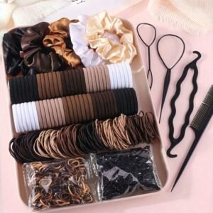 1159pcs/Set Basic Fashion Hair Accessories Kit: Includes Satin Scrunchies For Elegant Slouchy Styles, Multi-Color Hair Ties, And Practical Styling Tools Like Comb – Suitable For Girls, Satisfying Daily Needs. Easy To Create Simple Ponytails, Fancy Buns Or Creative Hairstyles, Practical And Useful!, School Stuff, Gifts