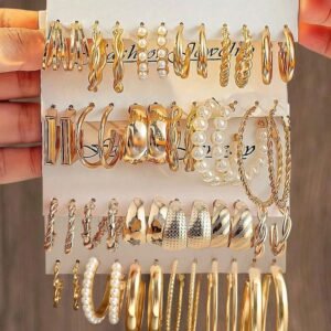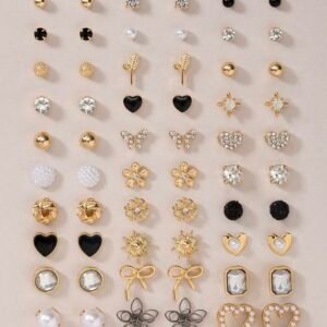 30 Pairs/Set Stud Earrings Assortment – Metal, Faux Pearl, Simple & Cute Designs Include Heart, Teardrop, Butterfly, Rhinestone, Flower, Sun Motifs, Great For Everyday Wear & Holidays – Gift For Women