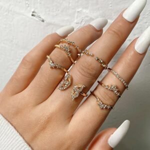 8pcs European And American Bohemian Style Inlaid Diamond Butterfly Ladies Ring Set Gift