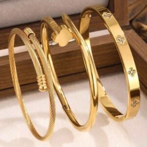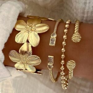 New Fashion High Quality Stainless Steel Flower Zirconia Women’s Bangle Bracelet Jewelry Set, Suitable For Daily Wear