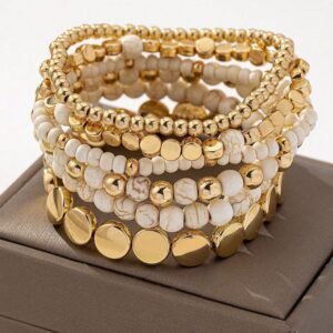 6pcs Bohemian Elegant Beaded Stretch Bracelets Set For Women, Handmade (Bead Quantity, Size & Placement Are Random)
