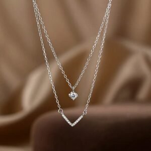 1pc Women’s Sparkling Double-Layer V-Shape Stacked Pendant Necklace, Fashionable Personalized Luxury Style Minimalist Delicate Choker, Suitable For Daily Wear And Holiday Gift
