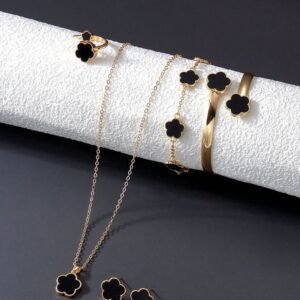 6pcs/Set Stylish Clover Pendant Necklace, Bracelet, Ring, Earrings Jewelry Set, Needs Peel Off Film