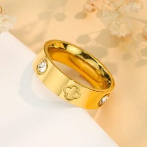 1pc Luxury Stainless Steel Lucky Clover Couple Ring, Sparkling Crystal Embellished, Fine Jewelry For Lovers Everyday Wear