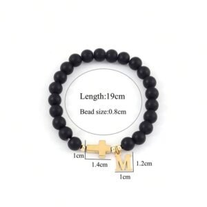 1pc New Matte Gold Stainless Steel Letter Cross Beaded Bracelet (Men)