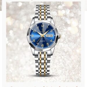 POEDAGAR 1pc Women’s Blue Stainless Steel Elegant Quartz Watches With Waterproof Luminous, Date Week Display Function, Fashion Woman Wristwatch Suitable For Daily Occasions, Ladies Holiday Gifts
