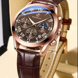 BINBOND Men’s Quartz Watch Luxury Sports Waterproof Chronograph Luminous Date Men’s Watch Business Leather Men’s Watch Clock