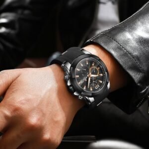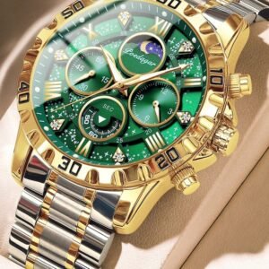 POEDAGAR 1pc Men’s Sports Watch, Waterproof Chronograph, Luminous Stainless Steel Luxury Quartz Watch + Gift Box