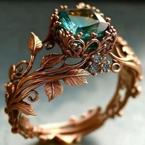 1pc Vintage Leaf Shaped Ring With Square Green Cubic Zirconia, Suitable For Women, Elegant Design For Wedding, Party, Birthday And Other Occasions