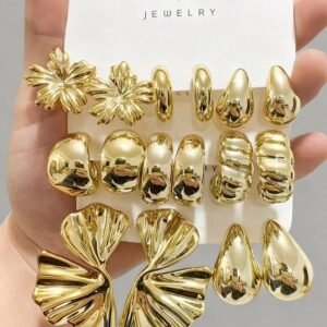 4/6/16pcs Gold-Tone Fashion Earring Set For Women, Includes Left & Right Ear Flowers, Five-Leaf Flowers, Teardrop, Heart, Small C-Shape Designs, Stylish & Elegant, Suitable For Daily Wear, Gatherings, Parties. Great Gift For Girlfriends, Mothers.