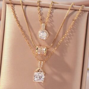 Hihho 3pcs Geometric Shape Necklace Set With Inlay, Creative Pendant Design, Luxury Jewelry Gift For Women