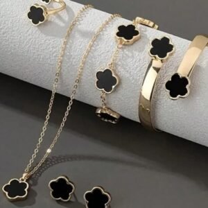 6pcs/Set Necklace, Bracelet, Earrings, Ring, Lucky Flower Necklace, Gold Earrings, Gold Ring, Gold Necklace, Gold Bracelet, Gold Bangle, Girl Jewelry Set, Suitable For Back To School, Party, Holiday
