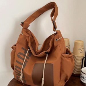 New Arrival Spring/Summer Solid Color Nylon 5-Pointed Star Decor Large Capacity Tote Bag, Women’s Shoulder & Crossbody Bag For Students, Literary School Bag & Bookbag For Women Or Students, School Bag, School Handbag, School Tote Bag, School Bookbag, Back To School Bags, Waterproof, Lightweight, Portable, Foldable, Classic Casual, Suitable For Teen Girls Women College Students, Perfect For Back To School, First Day Of School, Concert, New Fashionable Big Bags For Women , Office Bag