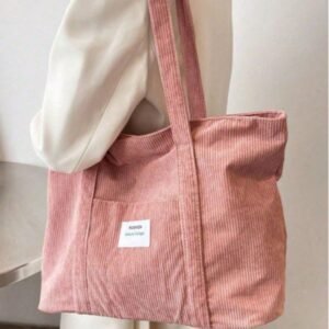 Large Capacity Solid Color Simple Corduroy Tote Bag, Tote Bags For Students, Multiple Compartments, Perfect For Beach, School, Work & Daily Use, Literary School Bag For Teens, Book Bag For Women Or Students, Perfect For Books, Shopping, Back To School And More, Perfectly Matching With Fall Outfits Women