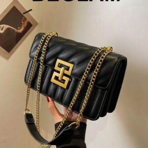 Minimalist Metal Decor Chain Shoulder Bag, Elegant PU Crossbody Bag, Flap Shoulder Bag, Women’s Fashion Handbag & Phone Pouch