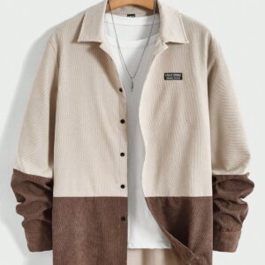 Manfinity VCAY Men Two Tone Letter Patched Detail Corduroy Shirt Without Tee, For Fall
