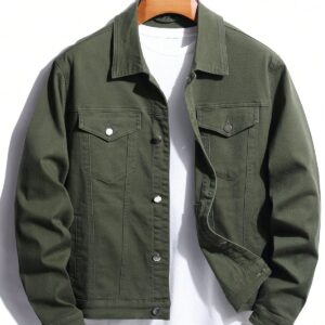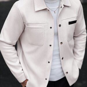 Manfinity CasualCool Men Solid Color Casual Jacket, Suitable For Autumn And Winter Men Cream Jacket Men Button Up Jacket Cream Button Up Men Men