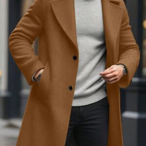 Manfinity Homme Men’s Plain Lapel Neck Long Sleeve Single-Breasted Casual Overcoat Mens Coat Mens Winter Coat Brown Coat Camel Coat.A Great Gift For A Boyfriend Or Husband., Brown Coat Men, Long Coat, Men’s Coat, Winter Coat, Fall Coat
