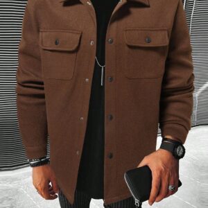 Manfinity Homme Men Flap Pocket Overcoat , Fall Winter
