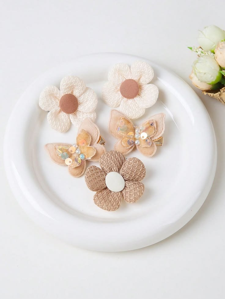 10pcs Girls’ Khaki Fabric Bow Hair Clips, Simple & Versatile Pom Pom Clips, Non-Damaging Side Bangs Clips, Suitable For Daily Use