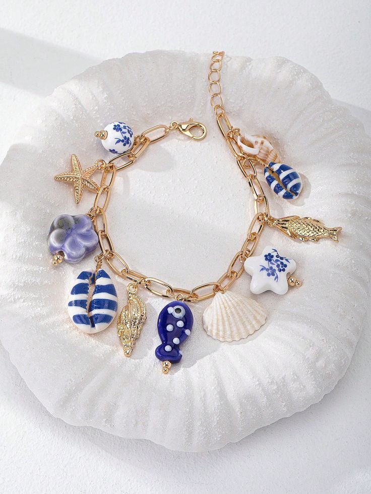 1pc Handmade Summer Starfish & Shell Pendant Bracelet, Beach Style Jewelry Accessory, Suitable For Beach Party And Photography, Colors And Shapes May Vary
