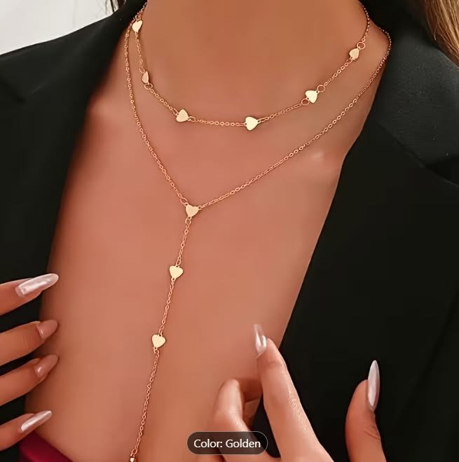 1pc of Stainless Steel Multi-Layer Heart Women’S Stacking Necklace, European And American Ins Style Light Luxury Niche Y-Shaped Clavicle Chain, Valentine’S Day Gift