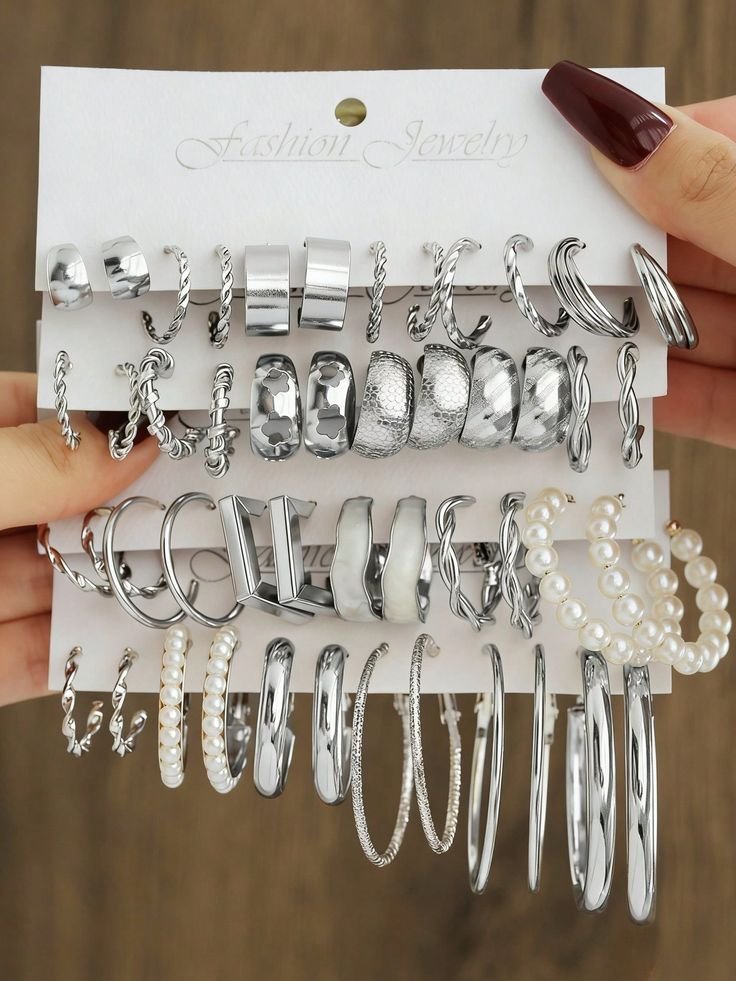 48-12pcs Vintage Punk Style Metal Earring Set For Women, Fashion Faux Pearl Drop Hoop Earrings, Hollow Square Jewelry Set, Ideal Gift For Friends & Family, Suitable For Daily Wear And Party