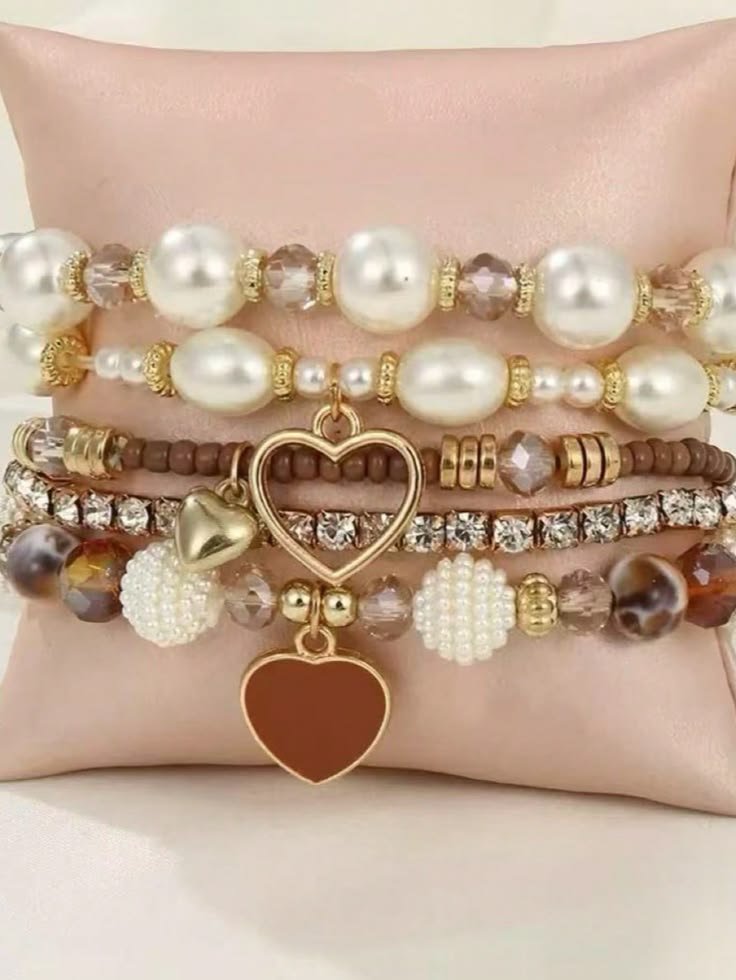 5pcs Pearl & Crystal Beaded Bracelets, Fashion Multilayer Wrist Bracelet Set For Women