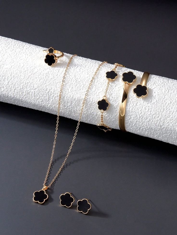 6pcs/Set Stylish Clover Pendant Necklace, Bracelet, Ring, Earrings Jewelry Set, Needs Peel Off Film