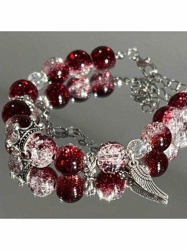 CHALIWANGA | Dark Red Dream Dark Red Crown, Unique Charm Bracelet, Dark Red Series, Whitening, Valentine’S Day Gift, Holiday Gift, Best For Christmas