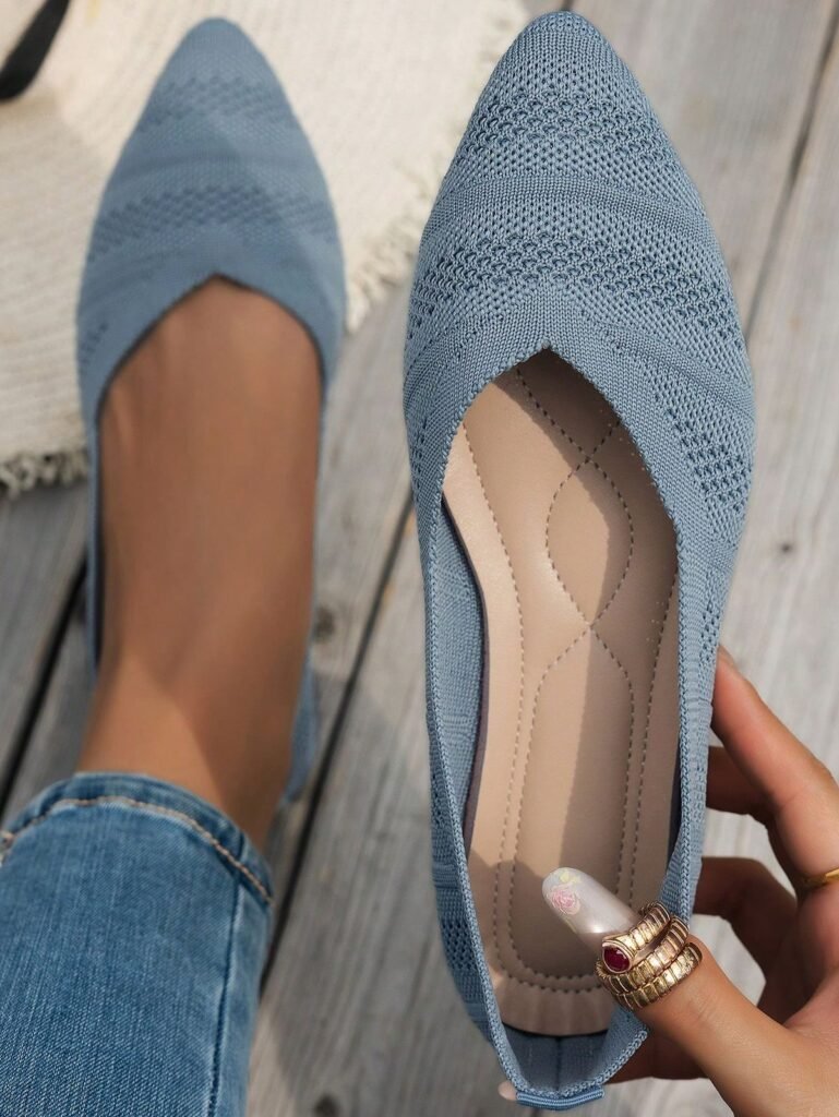 Women’s Fashion Pointed Toe Solid Color Knit Slip-On Casual Flats, Versatile