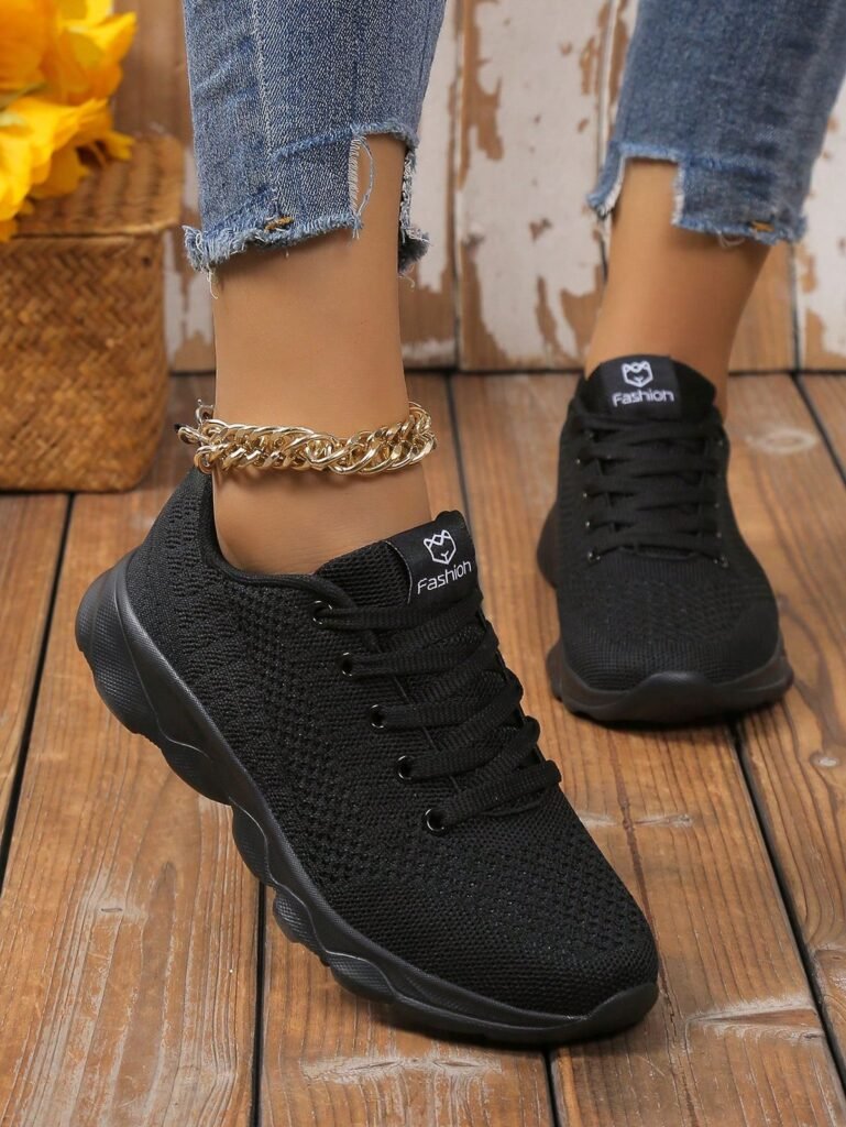 Women’s Outdoor Sports Shoes With Striped Floral Lace-Up Soft Fabric, Anti-Slip Lightweight Running Sneakers